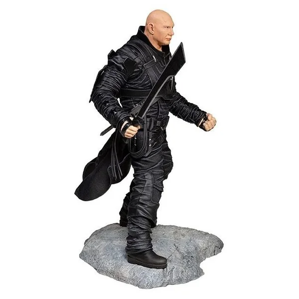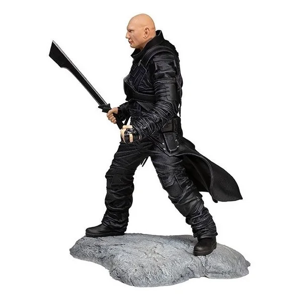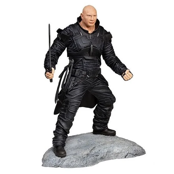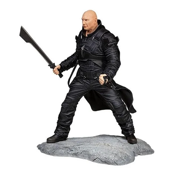 Elle a le visage de David Bautista cette statuette de Glossu Rabban. Normal car c’est l’acteur qui prête son visage au personnage de Rabban, dit La Bête, dans le film Dune de 2021. C’est le neveu du baron Harkonnen, impitoyable bien sûr. Et son crâne rond et lisse, son air vindicatif, son attitude défiante nous replonge dans l’ambiance du film de Denis Villeneuve.