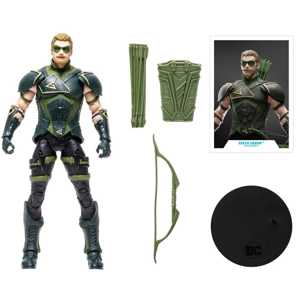 Cette action-figure de Green Arrow est une version inspirée du jeu-vidéo Injustice 2. Cette réplique est superbe et avec plein de détails. En prime, la Flèche verte est livrée avec un socle, bien évidemment. Mais le collectionneur trouvera également un carquois, un arc et des flèches. Sans oublier la carte à collectionner, comme souvent chez McFarlane, avec d’un côté un visuel du personnage et de l’autre une courte biographie.