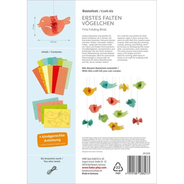 Haba Craft Kit Kit créatif Premier pliage Oiseaux suspendus