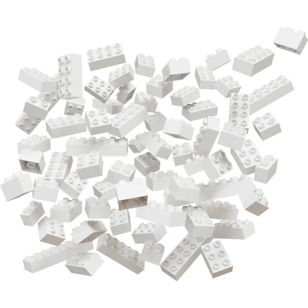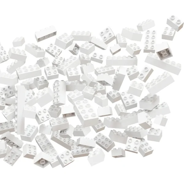 - Le set contient 120 pièces de construction blanches de différentes tailles.
