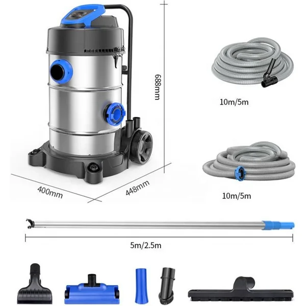 Les pompes sont adaptées à l’aspiration humide et sèche, ce qui permet de nettoyer non seulement à l’intérieur de l’étang ou de la piscine, mais aussi autour.
