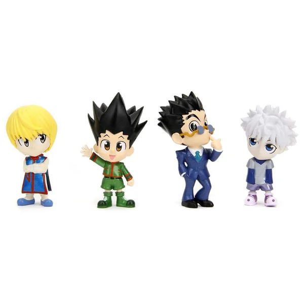 Figurine en métal de 6,5cm représente les personnages de Hunter X Hunter, comprenant Gon, Kirua, Kurapika et Léolio.