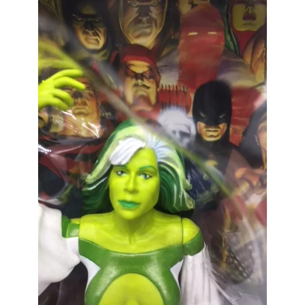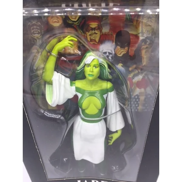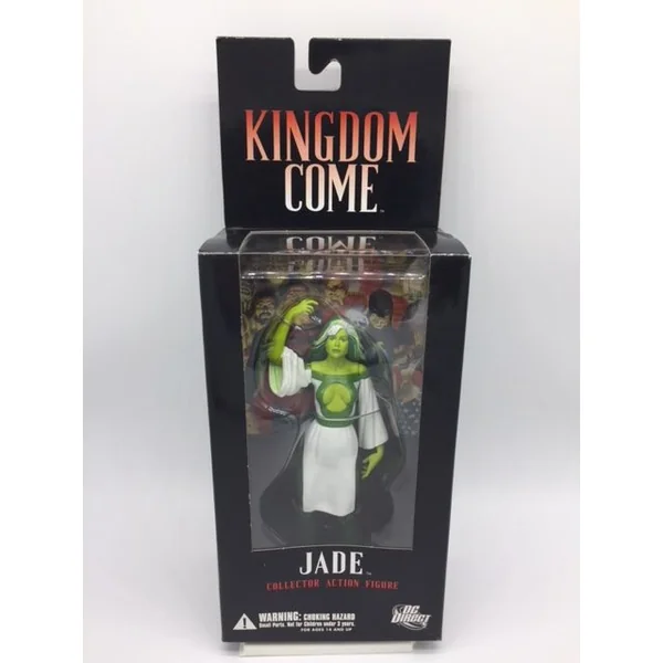 Jade est la fille de l’un des Green Lantern (Alan Scott). Et sa peau et sa chevelure ont une jolie couleur verte, comme le montre la figurine articulée de ce personnage.