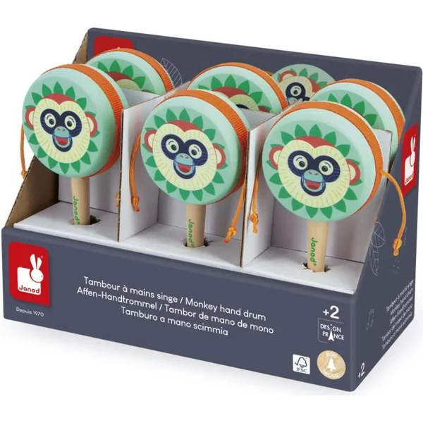 Le tambour à main en forme de singe est l’outil idéal pour initier votre enfant à la musique. Ce tambour attrayant fabriqué en bois certifié est un choix sûr et écologique qui invite les petits à explorer leur sens du rythme et à développer leur coordination de manière amusante et interactive.