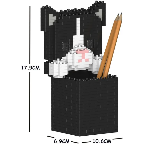 JEKCA BLOCS DE CONSTRUCTION -POT A CRAYON CHAT TUXEDO