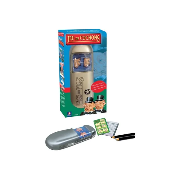 Jeu traditionnel où les joueurs se servent des cochons comme d’un dé ! Lancez les cochons et marquez autant de points que possible en un tour. Le premier joueur qui marque 100 points est le vainqueur. Avertissement De Sûreté Ne convient pas aux enfant de moins de 3 ans. Les dés présentes un risque d’étouffement..