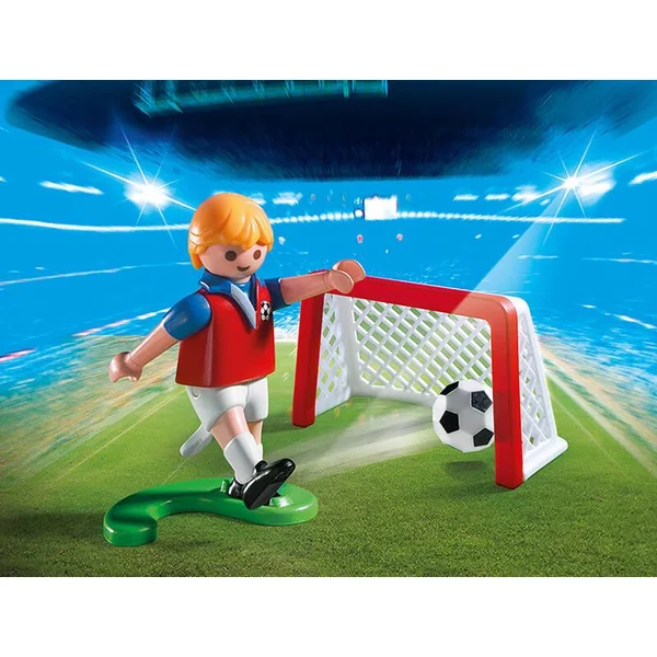 Joueur de football avec cage au but.