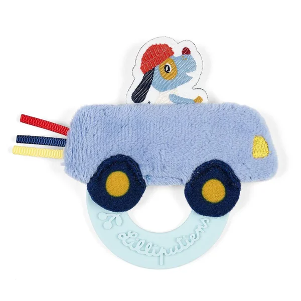 Un anneau de dentition rigolo pour soulager les douleurs de gencives, avec Jules et sa voiture à découvrir par de petites mains.