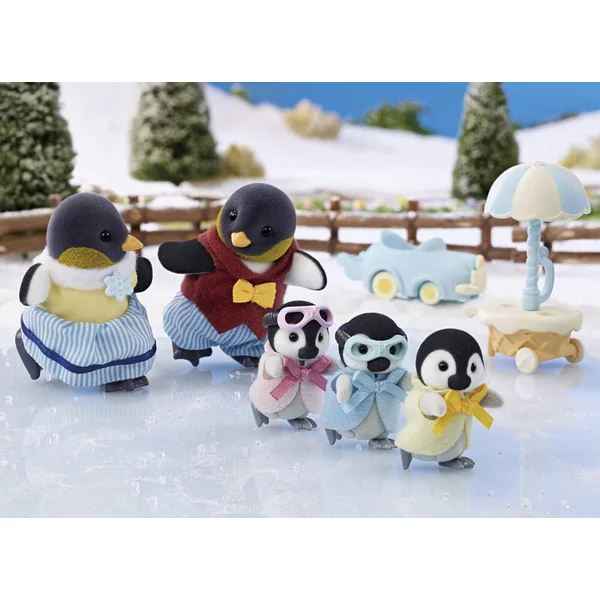 La famille Pingouin est composée de 3 personnages : la maman, le papa, le bébé. Ils sont tous articulés et habillés avec soin. Leurs vêtements peuvent être enlevés et remis à loisir.