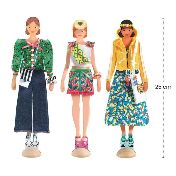 Un coffret qui répondra aux attentes des stylistes en herbe sans avoir besoin de savoir tenir une aiguille ni de se contenter de créations en papier découpé ! Avec de vrais tissus, l’enfant se laisse guider par les explications, suit les patrons puis assemble simplement les éléments sans couture. Il n’y a plus qu’à agrémenter les tenues avec les nombreux accessoires et à présenter ses modèles sur les poupées qui tiennent debout !