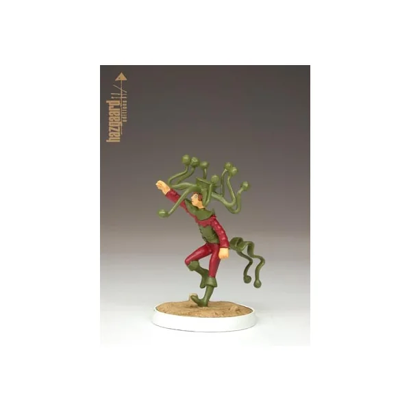 figurine en plomb sur socle vendue dans une boîte carton illustrée.