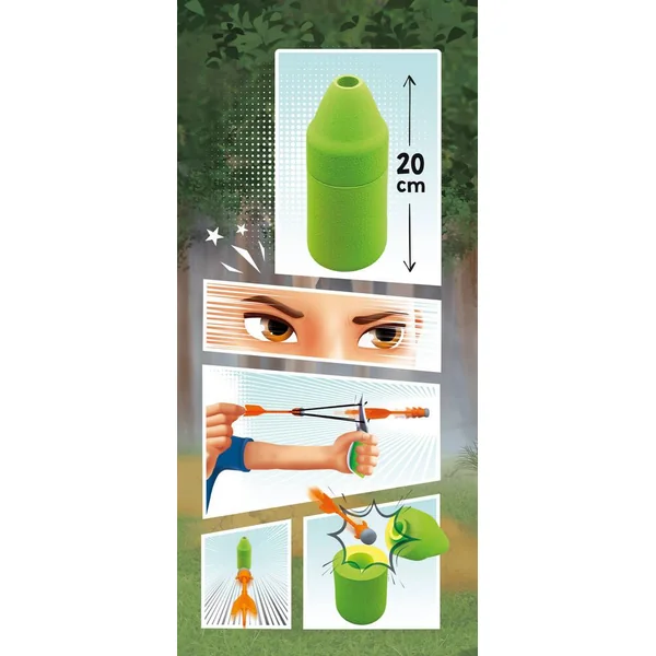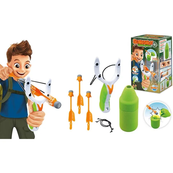 Un lance-pierre pour survivre en forêt Conception légère et portable L’enfant tire sur une bouteille en mousse qui « s’éclate » lorsqu’on la touche. Inclus : 3 fléchettes sécurisées et des élastiques de rechange-