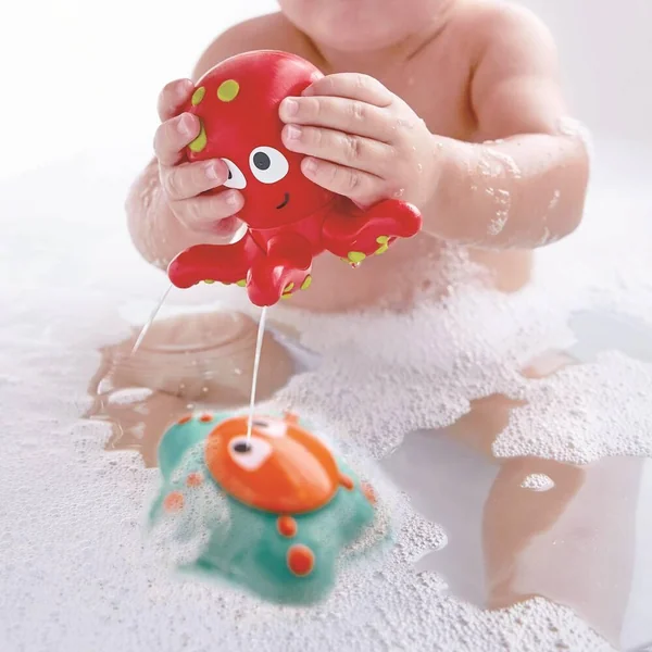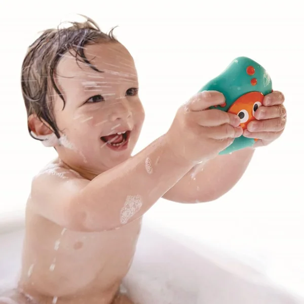 Ce duo de pieuvre et étoile de mer ont un petit secret ! Remplis-les d’eau et appuie dessus pour les faire jaillir. Jeu d’eau idéal pour le bain !