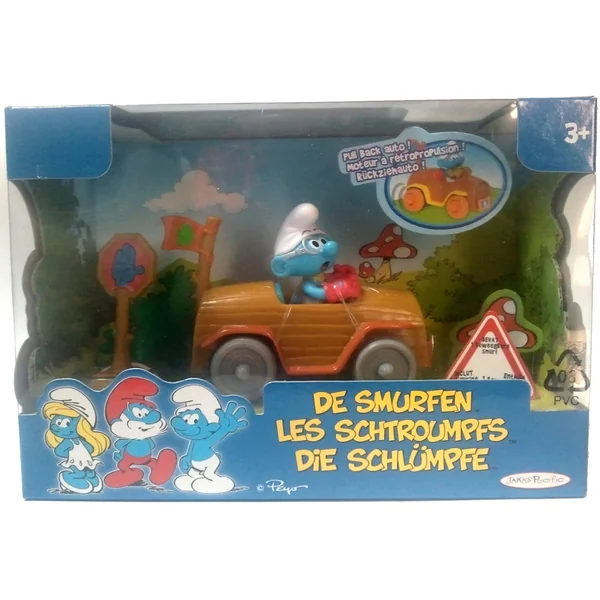 Voiture à friction avec 1 figurine articulée et accessoires.