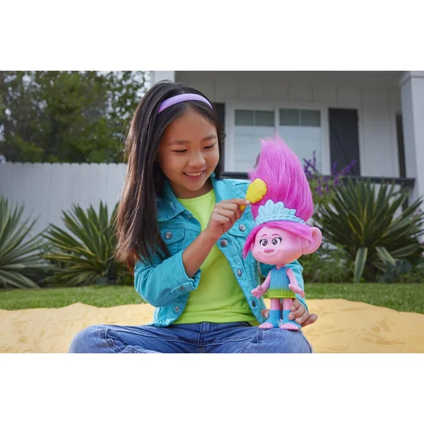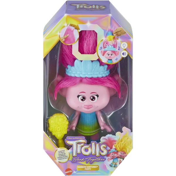 En coiffant ses cheveux tout doux, des lumières colorées clignotent et Poppy diffuse une mélodie. Hauteur de la poupée avec les cheveux 35.5 cm. 3 piles LR03 fournies. Fonction Try Me.