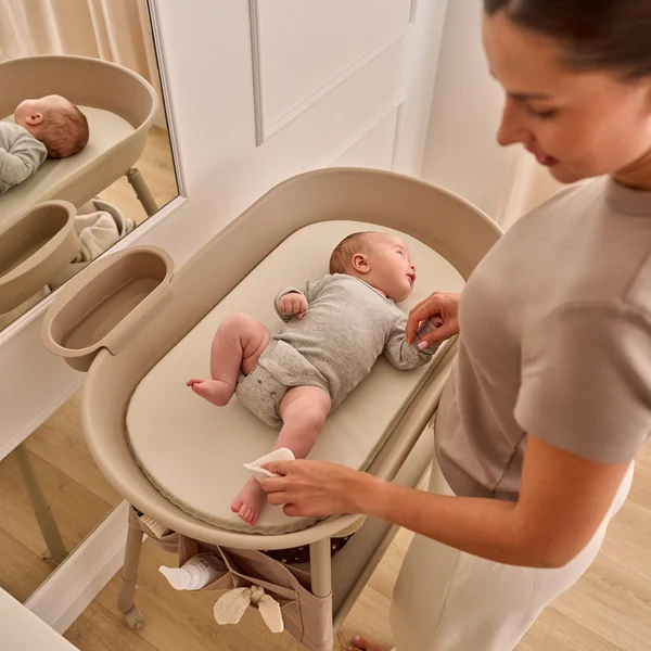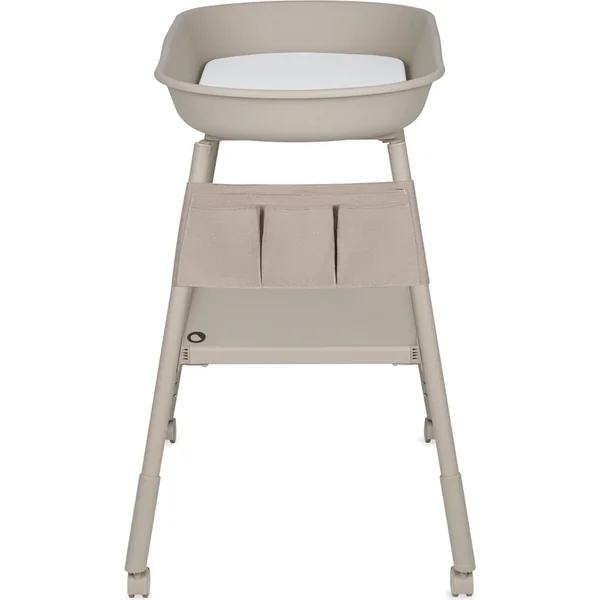 Encore plus d’espace pour les accessoires : L’organisateur textile avec cinq compartiments peut contenir tous les accessoires nécessaires et grâce à la possibilité de le fixer de n’importe quel côté de la table, vous aurez tout à portée de main. L’étagère inférieure offre un espace supplémentaire pour les couches, les lingettes, les jouets, etc.