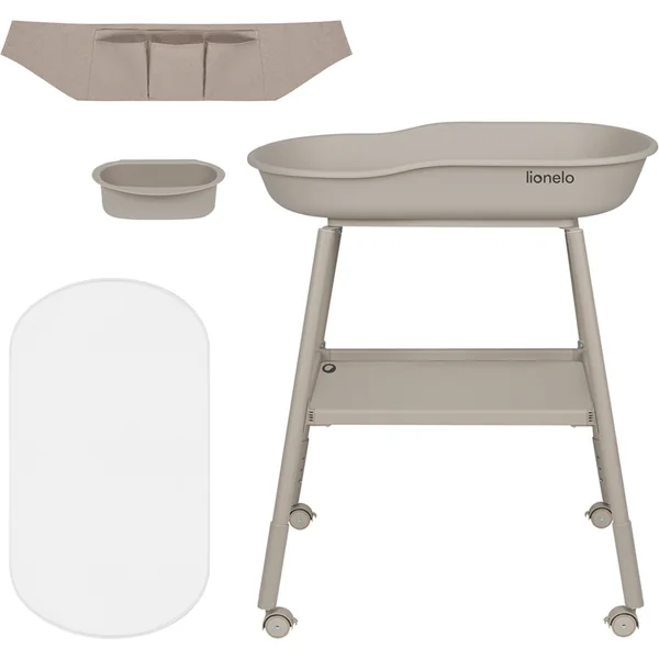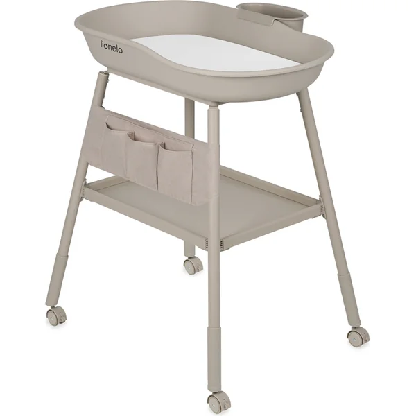 Lionelo Rosie est une table à langer équipée d’un matelas en mousse, d’un organisateur textile avec des compartiments pratiques et d’un compartiment latéral en plastique amovible qui peut servir de bol pour l’eau. Quatre roues avec freins facilitent le déplacement et la construction solide et stable garantit la sécurité du bébé pendant les soins.