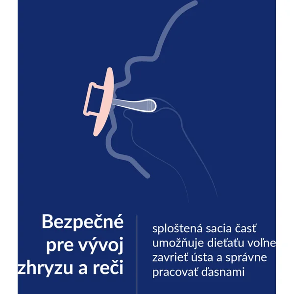 La partie suce aplatie permet à l’enfant de fermer librement la bouche et de travailler correctement avec ses gencives.