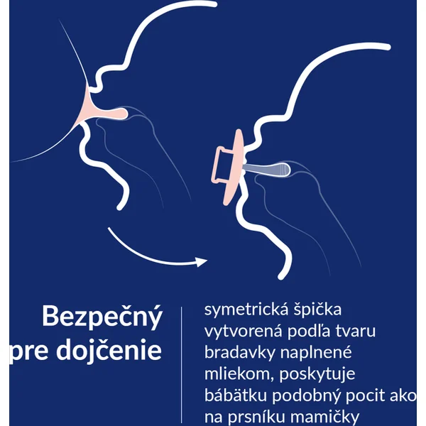 La pointe symétrique, créée selon la forme d’un mamelon rempli de lait, offre au bébé une sensation similaire à celle du sein de maman.