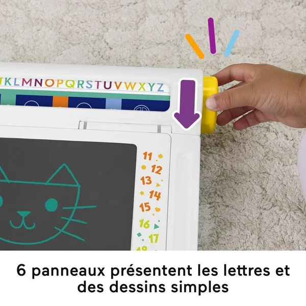 Ardoise magique avec stylo. Elle équipée de 6 pochoirs, d’un rouleau avec 6 modèles et d’un espace de rangement. Parfait pour s’entraîner à écrire et dessiner.