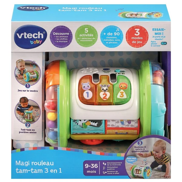 – Tam-Tam : en appuyant dessus, l’enfant déclenche des sons et des mélodies.