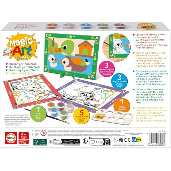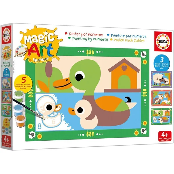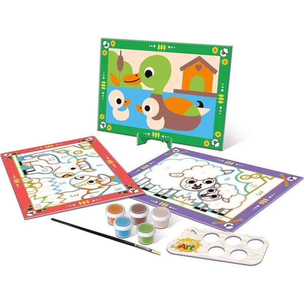 Amuse-toi à peindre avec les numéros ! Ce coffret est spécialement conçu pour les enfants à partir de 4 ans. Chaque zone du dessin est associée à un numéro qui indique la couleur à utiliser — c’est très facile ! Une activité créative qui aide à développer la concentration, la coordination et la reconnaissance des couleurs, tout en s’amusant. Contient tout le nécessaire pour commencer : une planche avec dessin numéroté, des peintures et un pinceau.