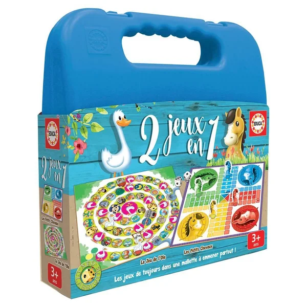 2 grands classiques de jeux de société dans une malette, tu peux l’emmener partout ! Contient 2 jeux : Les petits chevaux et Le jeu de l’oie. De 2 à 4 joueurs.
