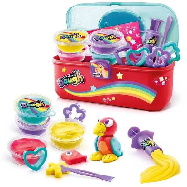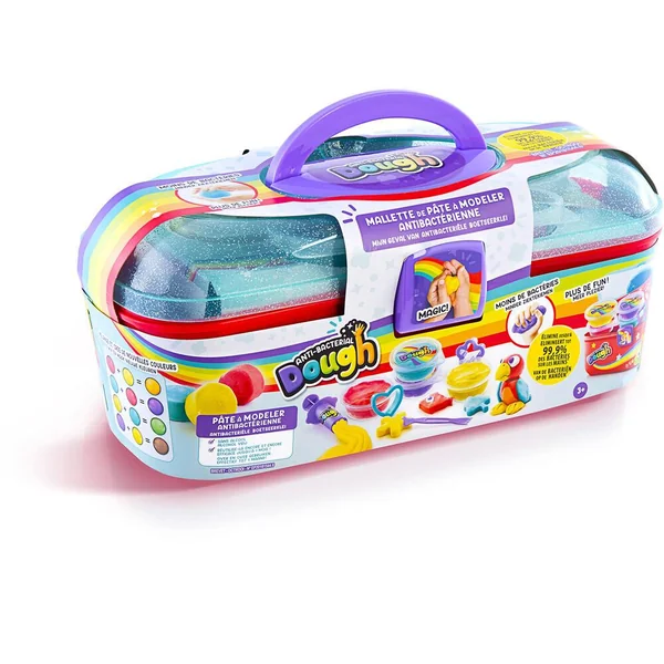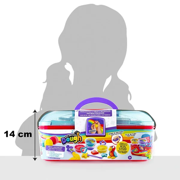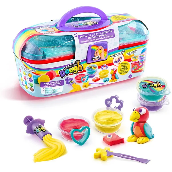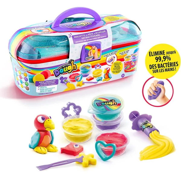 Joue avec la 1ère pâte à modeler antibactérienne qui désinfecte tes mains ! Inclus 4 pots, des accessoires et une mallette pour tout ranger ! Formule brevetée et sans alcool.