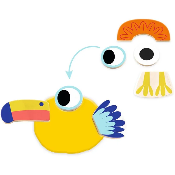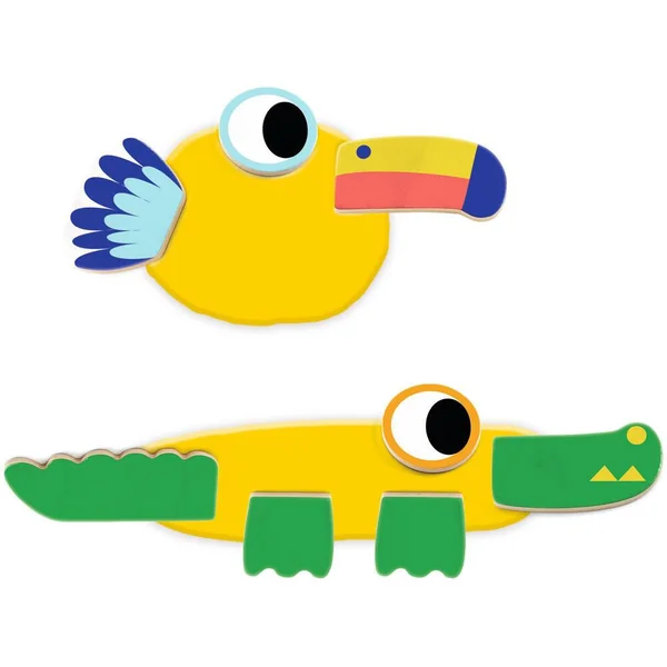 Une première activité de pâte à modeler très facile pour les enfants, dès 18 mois. L’enfant étale, roule, utilise la pâte à modeler pour créer des formes de différentes tailles. Il complète ses créations avec les pièces en bois illustrées recto-verso pour qu’elles prennent soudain la forme de drôles d’animaux. Une fois terminé, il retire les pièces de la pâte et il peut recommencer autant de fois qu’il le souhaite.
