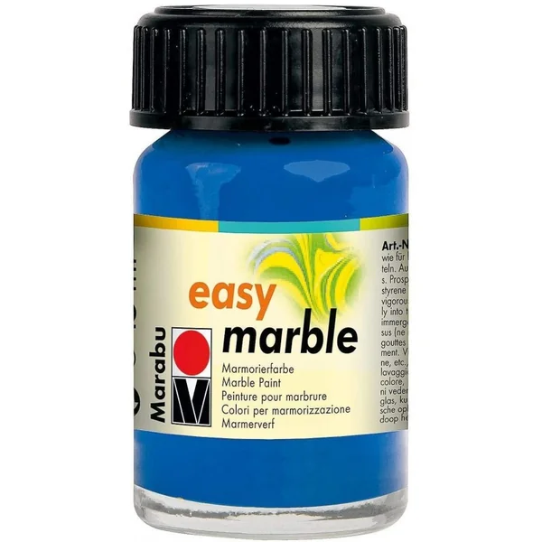 Marabu Peinture Easy Marble pour marbrure, bleu azur,15 ml, flacon en verre, à base de solvant, sèche après env.15 min, après séchage peut être essuyée avec un chiffonhumide, ne résiste pas au lavage, pour objets jamais peints,adapté pour marbrures par trempage et avec support depeinture (130539095)