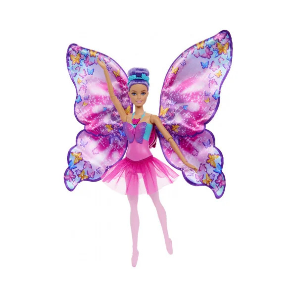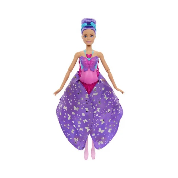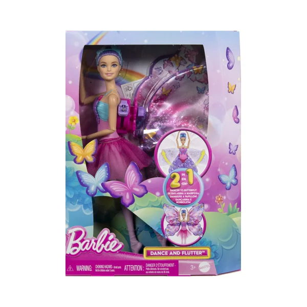 Barbie® Danseuse avec des ailes de papillon stimule l’imagination et offre une transformation magique 2 en 1 !