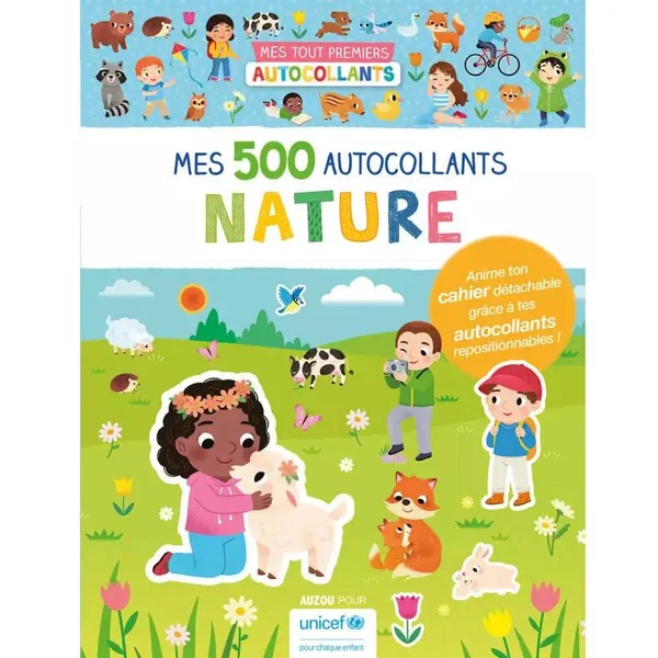 Un cahier de plus de 500 autocollants sur le thème de la nature. Il propose également un cahier détachable d’histoires à animer.