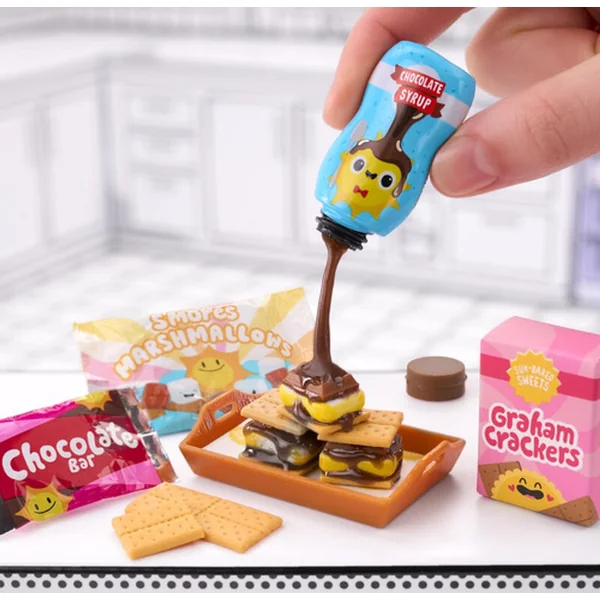 Compare le contenu de ton emballage avec le guide de collection inclus pour découvrir quel mini tu as. Prépare la nourriture selon la « recette » au dos. Une fois terminé, mets ta mini nourriture sous la lumière UV pour que la résine durcisse et expose-la à tous.