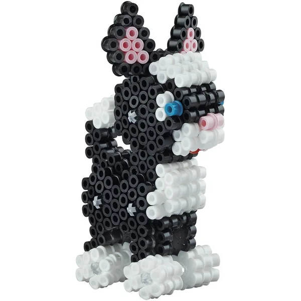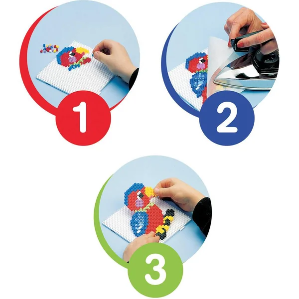 Ce coffret propose aux enfants de réaliser ses deux animaux domestiques préférés : le chat et le chien. Ils deviendront vites des figurines pour jouer ou décorer la chambre ! Retrouvez dans ce coffret 1 grande plaque carrée, des connecteurs Hama, des modèles de réalisation, 2500 perles Hama midi, les instructions et le papier à repasser. Pour jouer, rien de plus simple : 1) Poser les perles sur la plaque. 2) Couvrir le motif avec le papier à repasser puis repasser au fer très chaud sans vapeur. Le repassage est laissé aux soins des adultes. 3) Enlever le motif obtenu de la plaque de base qui est réutilisable. Les jeux Hama sont pensés pour le développement intellectuel et moteur des enfants. Au cours des premières années de vie, les petits apprennent à reconnaître les couleurs, à saisir les objets, à distinguer les formes, à avoir une première idée des quantités, etc. C’est en relation avec ces années d’apprentissage que les produits Hama montrent leur force en tant que jouets pédagogiques. Guidés par leurs parents, les enfants s’amuseront à prendre confiance en eux. Des activités qui développent le partage, la dextérité et qui stimulent la curiosité !