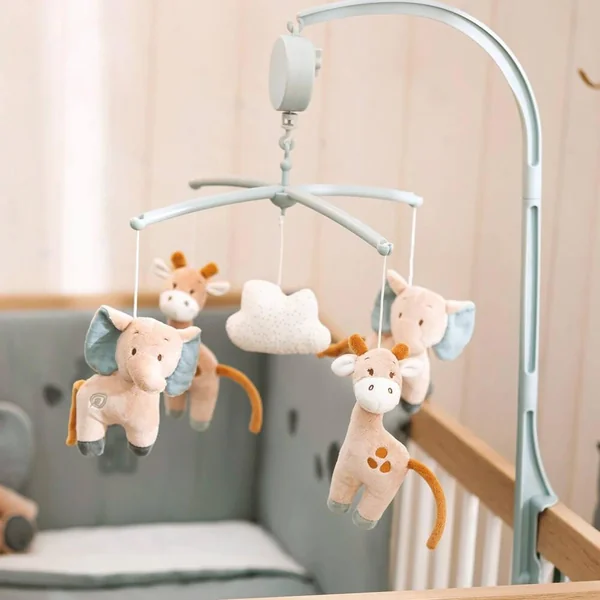 Le mobile est l’accessoire idéal à fixer au lit. Les petits personnages qui tournent au rythme de la chanson « La-Le-Lu » berceront bébé et l’endormiront. Les peluches peuvent être lavées en machine à 30 ° C.