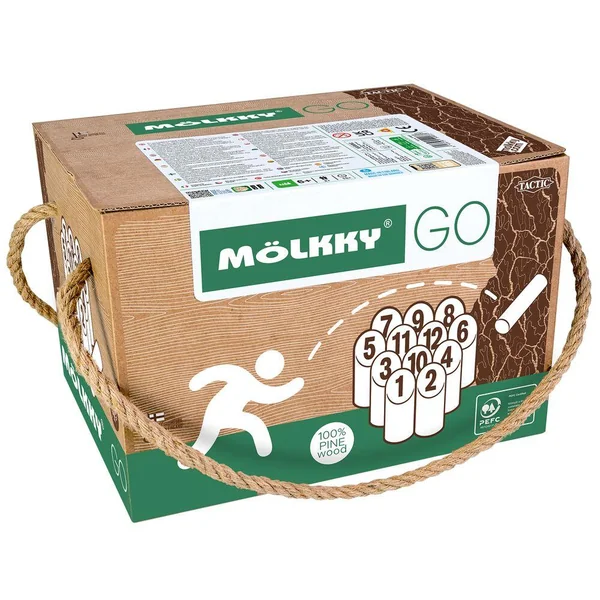 Le Mölkky, dimensions officielles. Caisse de transport en pin.