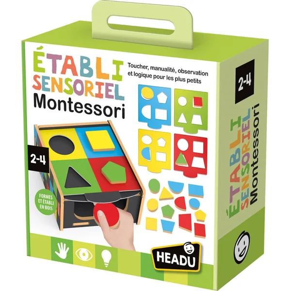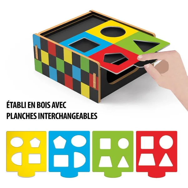 De nombreux jeux d’observation et de motricité pour les plus petits. Touche le carré, observe le triangle, prends le cercle, regarde la montgolfière… Voici un établi sensoriel multi-activités idéal pour développer, de manière spontanée, les compétences des plus petits en engageant le toucher, la motricité fine, la perception visuelle et la pensée logique.