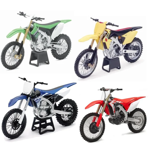 Répliques officielles en Die-Cast des 4 plus grands constructeurs : Suzuki RM-Z450, Yamaha YZ450F, Honda CR250R, Honda CRF 450R et Kawazaki KX 450F. Suspension arrière fonctionnelle. Modèle selon disponibilité. Vendu à l’unité.
