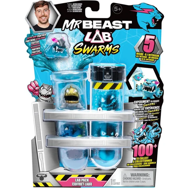 Découvrez la 1ère gamme de jouets de MrBeast avec ces mini figurines ! L’incroyable laboratoire de MrBeast vous a préparé une expérience exceptionnel : mettre le liquide dans les tubes à essais pour faites apparaître les 5 swarms. 120 figurines sont à collectionner (vendus séparément) avec 3 effets de rareté : aurez-vous la chance de découvrir une figurine rare, super rare ou en édition limitée ?