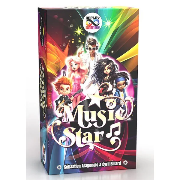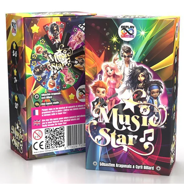 Plongez dans l’univers de Music Star et devenez la superstar ultime ! Dans ce jeu de société , vous devrez donner des concerts et enregistrer des chansons pour compléter des disques. Le but ? Avoir votre personnage représenté le plus souvent sur chacun des trois disques pour remporter la victoire ! Choisissez votre personnage, enregistrez des chansons, activez des pouvoirs spéciaux, et composez de nouvelles musiques en piochant des cartes supplémentaires afin de devenir la Music Star !