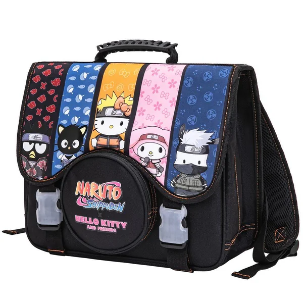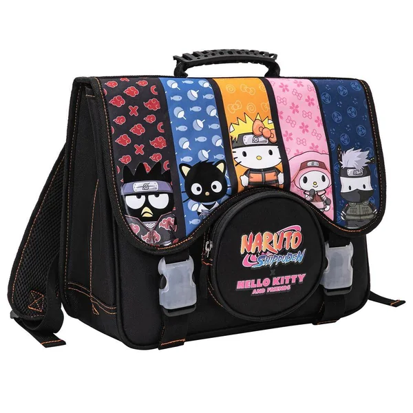 Cartable 38cm naruto shippuden et hello kitty noir, matiere polyester, dimension cm : 38x34x16.