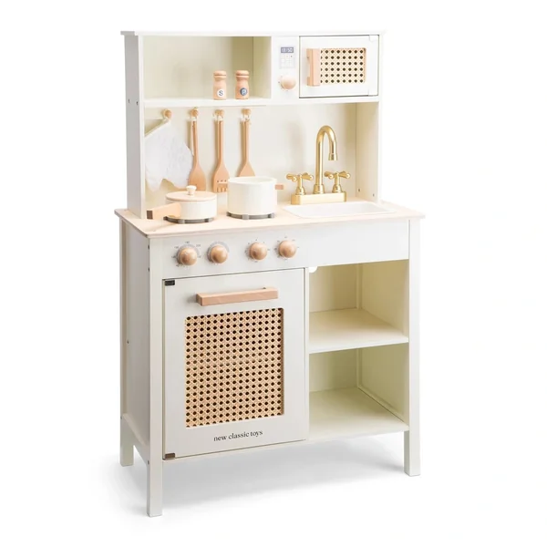 The elegant rattan details of the kitchenette not only make it visually appealing but also contribute to a more immersive play experience. Children can engage in various role-playing scenarios, whether they are hosting a dinner party, running a café, or simply cooking for their family. This versatility makes the New Classic Toys Kitchenette a fantastic gift for birthdays, holidays, or any special occasion, as it caters to a wide range of imaginative play.