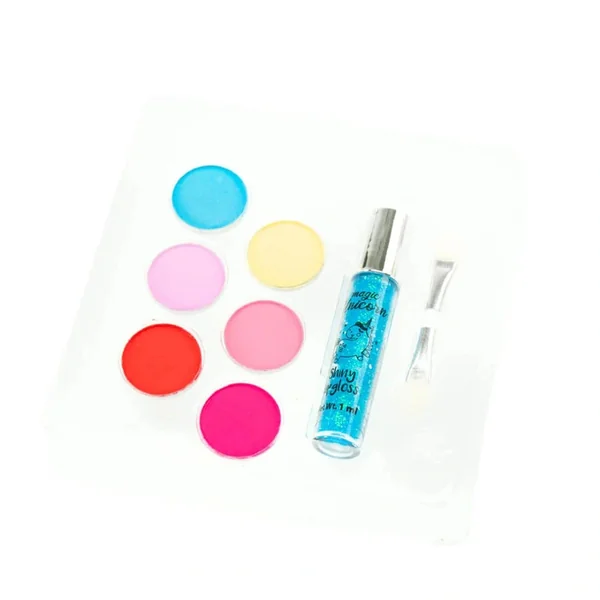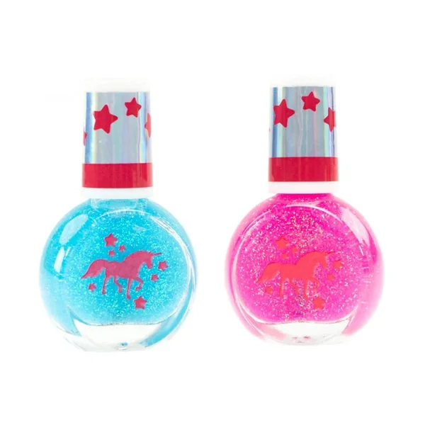 The Magic Unicorn Gift Set includes two distinct assortments: a nail set and a makeup set. The nail set features two beautifully colored nail polishes that are easy to apply and remove, making them ideal for young artists. Parents will appreciate that the nail polish can be effortlessly washed off with just soap and water, ensuring a hassle-free experience for both kids and caregivers. The makeup set, on the other hand, contains six stunning eyeshadows, an applicator brush, and a glossy lip gloss, allowing children to explore their artistic side while enhancing their natural beauty.