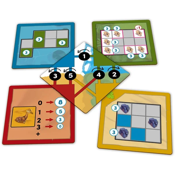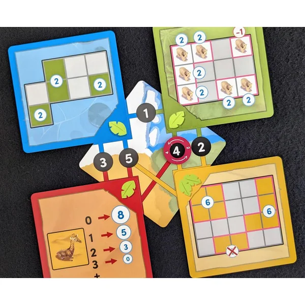 Créez la meilleure réserve animalière, qui accordera le mieux ses biomes et ses espèces. Sélectionnez vos cartes lors d’une phase de draft, puis construisez votre réserve en les agencant au mieux afin de remplir les objectifs successifs. Ces derniers s’alterneront au cours des 5 manches du jeu.