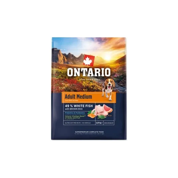 Nourriture Ontario Adult Medium Poisson & Riz Brun 2,25kg