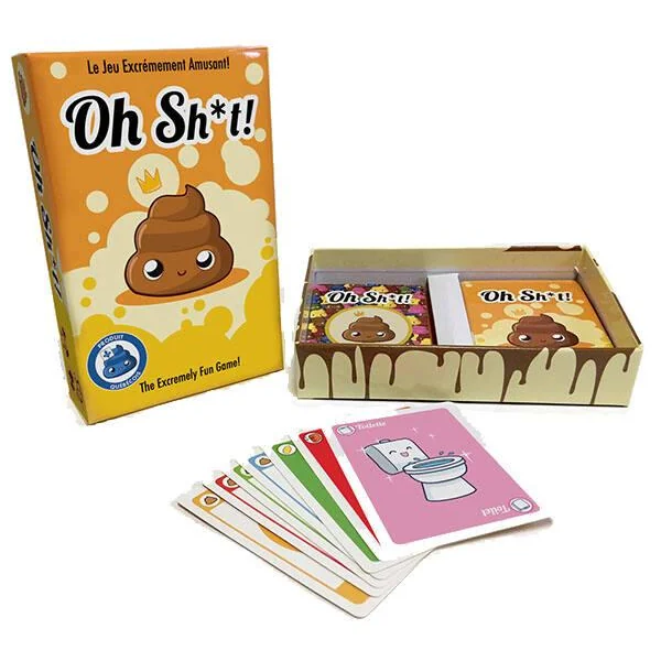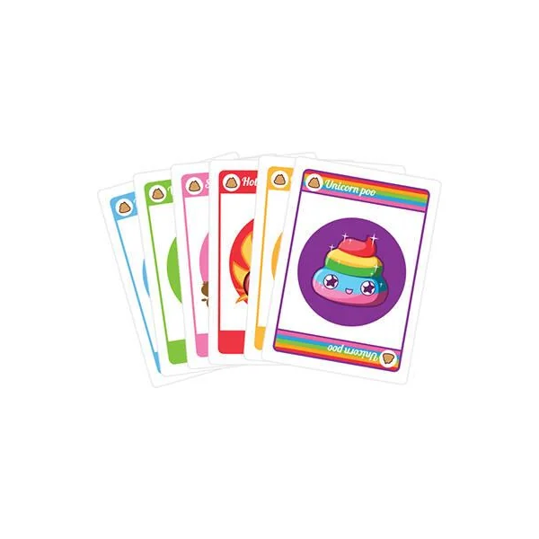 Jeu de cartes simple avec une stratégie unique où vous devez éliminer les autres joueurs en les enterrant sous 5… cacas. Excrêmement amusant ! De 2 à 6 joueurs. Durée de la partie : entre 15 et 30 minutes.