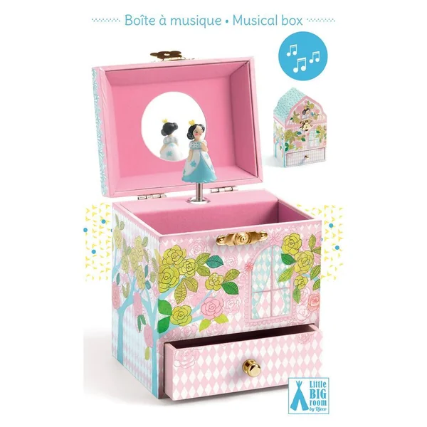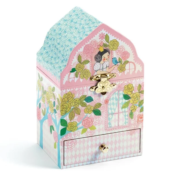 Une jolie boîte à bijoux silhouettée. Tournez la manivelle, ouvrez la boîte et tout s’anime. Musique : « La flûte enchantée », Wolfgang Amadeus Mozart