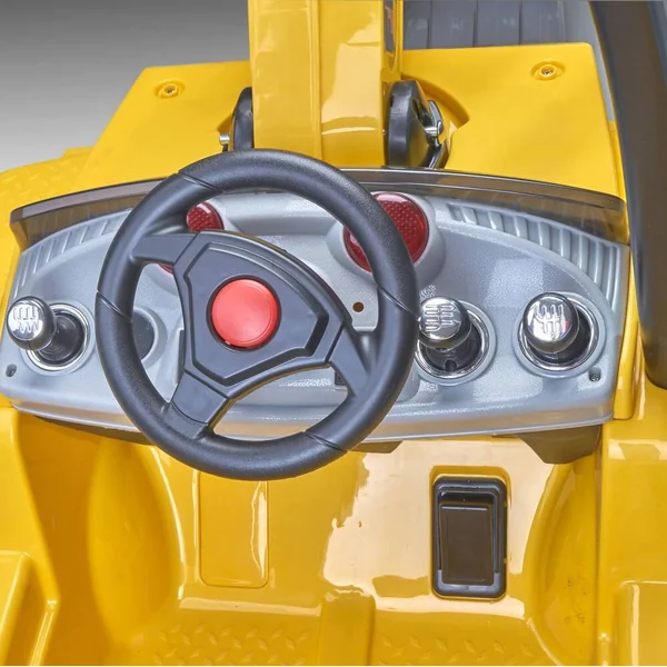 Feber super pelleteuse avec une pelle surpuissante de 12V. 1 place. La pelleteuse avance et recule. Utilise la fonction pelle comme une vraie avec son bras et la pelle articulés. Vitesse maximale : 3.2 km/h. On accélère et on freine en appuyant sur les boutons. Possibilité de tourner à gauche et à droite grâce au volant. Comprend également un coffre à l’arrière. Poids maximum de l’utilisateur : 30 kg. Batterie et chargeur inclus. Roues en plastique, non gonflables. Poids de la pelleteuse : 17 kg. Poids maximum supporté par le godet : 0.5 kg. La pelleteuse doit être assemblée par un adulte. Notice de montage incluse.