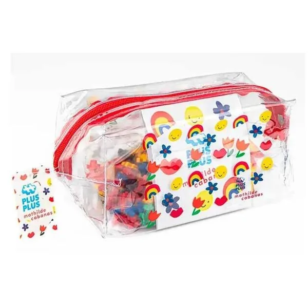 Contenance : 424 Plus-Plus : 190 ++ Jaune, 10 ++ Noir, 110 ++ Paillettes rouges, 90 ++ Néon bleu, 16 ++ vert, 8 ++ Néon orange, une trousse pop & colorée, transparente pour laisser apparaître les ++ et les ranger. Une collab’ bien FUN avec Madame Bisou. Parfaite pour les fêtes de fin d’année ! 5 designs 2D développés par Mathilde Cabanas à construire.