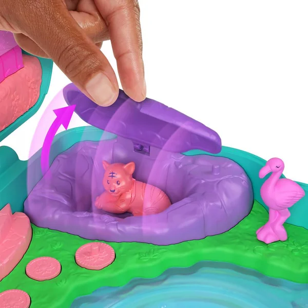 Le chien sur son scooter joue les coffrets. Il emporte avec lui des espaces de jeu, des surprises, 12 accessoires dont des animaux et 2 mini-figurines.